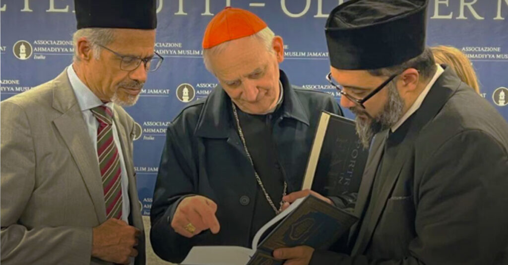 بولونیا (اسٹاف رپورٹر) — 8 نومبر 2025 کو اٹلی کے ممتاز اور معروف مذہبی رہنما کارڈینل میٹیو زُوپی، جو President of the Italian Episcopal Conference اور آرچ بشپ آف بولونیا بھی ہیں، نے احمدیہ مسلم جماعت اٹلی کے مرکزی ہیڈکوارٹر بیت التوحید — سان پیئترو اِن کزالے کا خصوصی دورہ کیا۔ یہ دورہ اٹلی میں بین المذاہب ہم آہنگی اور مذہبی مکالمے کی فضا کو مضبوط بنانے کے لیے ایک اہم سنگِ میل قرار دیا جا رہا ہے۔